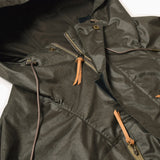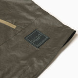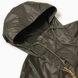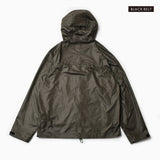 ヴィンテージ感のある光沢がワックスドコットンに見える素材は「小松マテーレ」による形状保持加工と撥水加工を施した軽量機能素材。重量感のあるビジュアルに反して軽量な着心地で、大きなベンチレーションを備えたウィンドシェル。