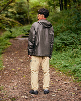 日本製のオリジナルボディは、身幅にゆとりを持たせレイヤリングしやすいナチュラルシルエット。特徴的なフロントの大型ファスナーは、ポケットとベンチレーションを兼ね、開閉することで蒸れや体温を調整することができる。ポケット裏は漁猟の網をリサイクルした「REAMIDE」メッシュを使用。フード形状は立体的なパターンにより風雨をシャットアウト。