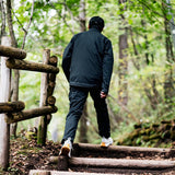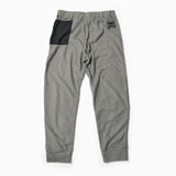 組み合わせるウィンドパンツは、オーバーパンツとして使えるゆとりのあるナチュラルシルエット。必要最低限 な4つのポケットを備える。背部のポケットは内容物が落下しにくいファスナー付きでスマートフォンを収納可能。ポケットに本体を収納することでパッカブルになる。裾はドットボタンで開閉し、シューズを履いたままでも着用できる。ウエストはゴム+紐でフィット感を調整。