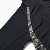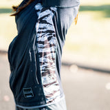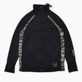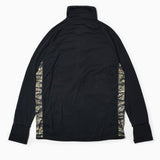 日本製のオリジナルボディは、アクティビティにもタウンユースにも対応するほどよいフィット感。肩周りの自由度が高いラグランスリーブで、首元から脇にかけてタイガーカモに切り替えている。フロントファスナーは上下に開く逆開タイプで、開閉することで蒸れや体温を調整可能。ハイネックで首元を保温し、防寒性を高めている。 袖はサムホール仕様。
