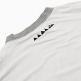 日本製のオリジナルボディは、肩幅と身幅を大きくアレンジしたビッグシルエット。肩からゆるやかに落ちたショルダーとゆとりのある身幅で現代的なシルエット。脇のガゼットにより立体的な構造で、ガゼット下部のポケットは補給などを入れることができる。ネック部分とポケットの色を変えたコンビカラーでスポーティーにアレンジ。立体感のあるフロッキープリントした胸のMAマークがデザインのポイント。