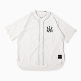 ベースボールをモチーフとしたデザインのアクティビティコレクション。胸のワンポイントマークが特徴的な新型のノーカラーシャツ。