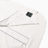 本体素材は通風孔があり通気性の高い東レの撥水素材「Primeflex Dot Air®」を使用。先染めのストライプ柄はクラシカルさを感じる落ち着いた雰囲気。弱ストレッチで長時間着用していてもストレスを感じない。洗濯しても速く乾くメンテナンスのよさも魅力のひとつ。