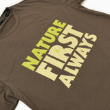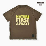 このまま地球環境が壊れているのを見過ごせない。他人任せではなく、ひとりひとりがミッションとして地球の未来のために行動しようというメッセージを込め、再生ポリエステル「BRING Material™」を使用したTシャツ。