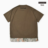 日本製のオリジナルボディは、アクティビティと日常使いにほどよくフィットするレギュラーシルエット。裾にはスリットが入り、背面が長いクラシカルなディティール。背面下部はMMAのオリジナルプリント生地の残布をアトランダムに切り替えて使用。