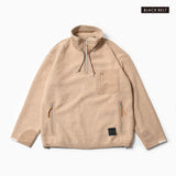 日本製のオリジナルボディは、肩幅と身幅にゆとりを持たせたリラックスシルエット。胸元のハーフファスナーで体温調節が可能。ファスナーは軽量で高級感のあるメタリックコイルファスナーを使用。襟とポケットカバーと袖先には高強度の撥水モノフィラメントリップストップナイロンを使用することで高い耐久性を持つ。