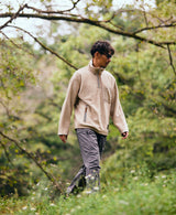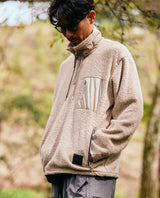 伝統的な繊維業の街、イタリア北西部のプラートで150年以上リサイクルウールを生産している「CALAMAI」社。再生ウールとマイクロ化繊糸を混紡したエアリーなボアフリースを使用したオーセンティックなプルオーバー。