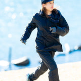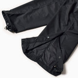 日本製のオリジナルボディは、オーバーパンツとして使えるゆとりのあるナチュラルシルエット。必要最低限な4つのポケットを備え、背部腰部のファスナー付きポケットに収納することでパッカブルになる。裾はドットボタンで開閉し、シューズを履いたままでも着用可能。ウエストはゴム+紐、裾はドローコードでフィット感を調整できる。