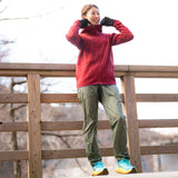 日本製のオリジナルボディは、オーバーパンツとして使えるゆとりのあるナチュラルシルエット。必要最低限な4つのポケットを備え、背部腰部のファスナー付きポケットに収納することでパッカブルになる。裾はドットボタンで開閉し、シューズを履いたままでも着用可能。ウエストはゴム+紐、裾はドローコードでフィット感を調整できる。