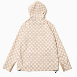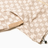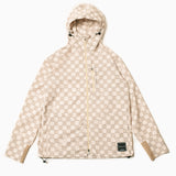 本体素材は、通風孔があり通気性の高い東レの撥水素材「Dot Air®︎」を使用。吸水速乾・ストレッチ機能に加えて薄く軽量で、軽い着心地は長時間着用していてもストレスを感じない。全面に「フィニッシュを目指す」気持ちをイメージしたミツカチェッカー柄をプリント。