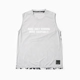 日本製のオリジナルボディは、MMAの考えるアクティビティに適したシルエットを追求。肩幅と身幅はタイトすぎないサイジングで、動きやすくストレスを感じにくい。背中を吸水速乾メッシュで大胆に切り替え、通気性を向上。高負荷や暑い時期のスポーツに対応する。胸に「MAKE DAILY RUNNING MORE ENJOYABLE(日々のランニングをもっと楽しく!)」のメッセージ。