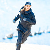 日本製のオリジナルボディは、身幅にゆとりを持たせたナチュラルシルエット。特徴的な左右の胸元のファスナーは、ザックを背負った上から着用した際にもハーネスにアクセス可能。ベンチレーション機能も兼ねている。フード形状は立体的なパターンで着用感を向上。前面のフロントファスナーは開閉することで蒸れや体温を調整することができる。腹部のポケットに収納することでパッカブルになる。袖は時計窓 + ベルクロ調整タイプ。